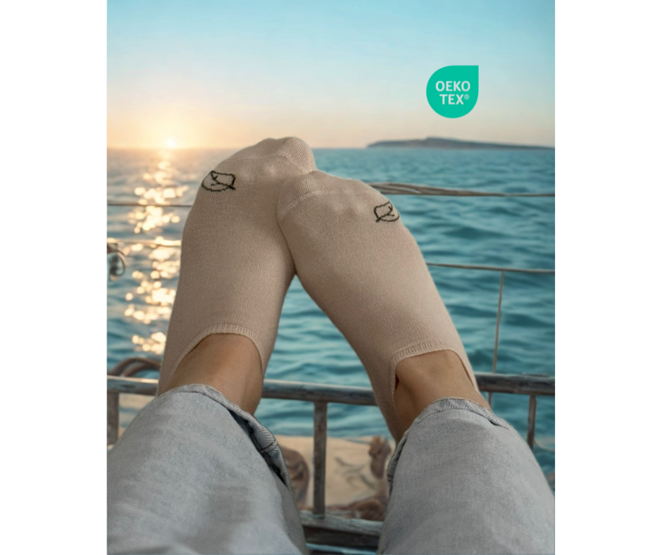 Stay cool and comfortable in our Bamboo Sneaker Socks from Sage Collection—lightweight, ultra-soft, and perfect for warm weather. Made from breathable, moisture-wicking bamboo viscose, these thin, stretchable socks keep your feet dry and fresh all day long. A small leaf detail on the outer side helps distinguish left from right, eliminating awkward toe bunching and ensuring a perfect fit every time. Crafted with OEKO-TEX® certified materials, they're gentle on your skin and kinder to the planet. Available in two soothing tones: Beige and Mint Green.