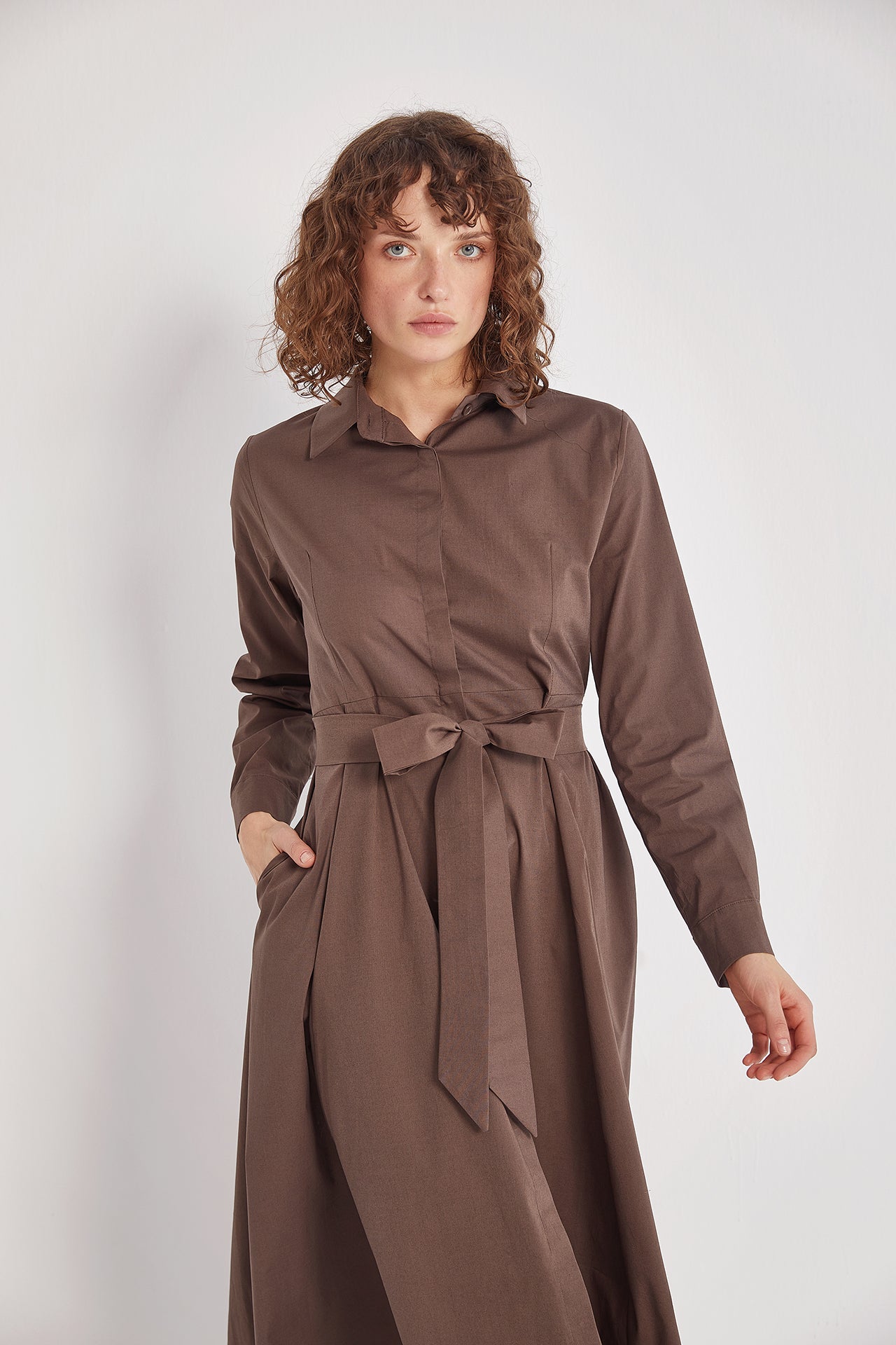 A shirt-collar cotton poplin dress that feels light and casual in warm weather. Complete your comfort with its pocket detail and buttoned cuffs. It also comes with a belt for optional styling.