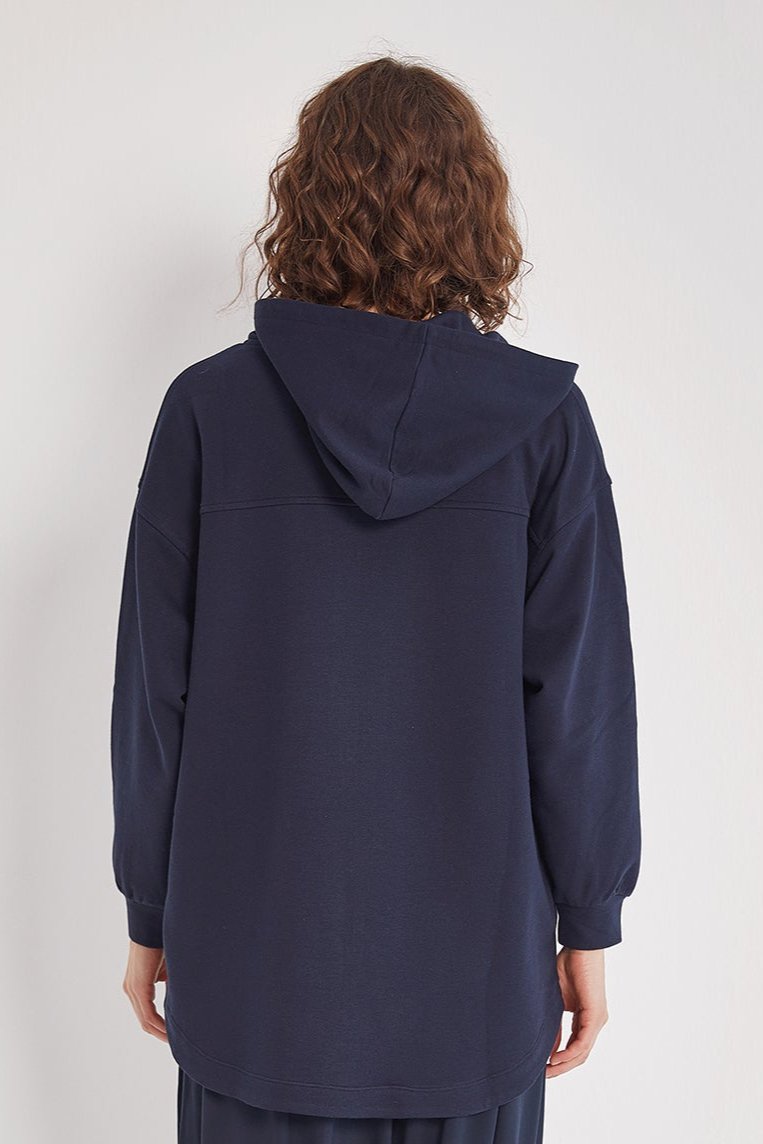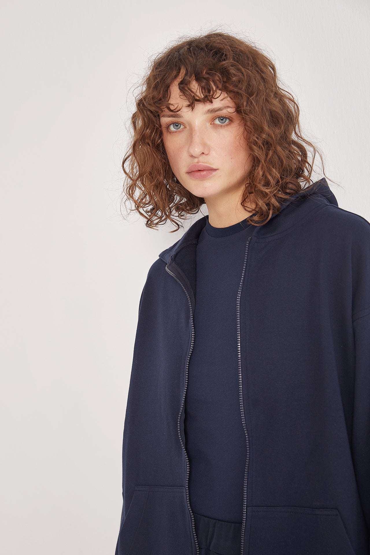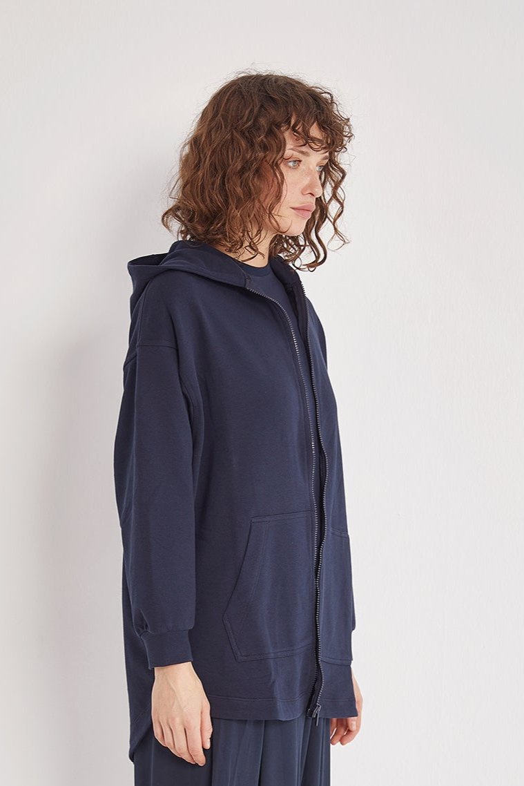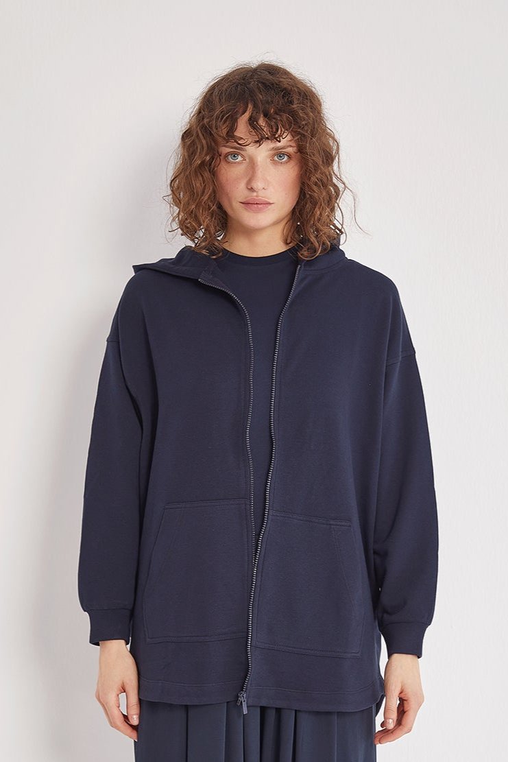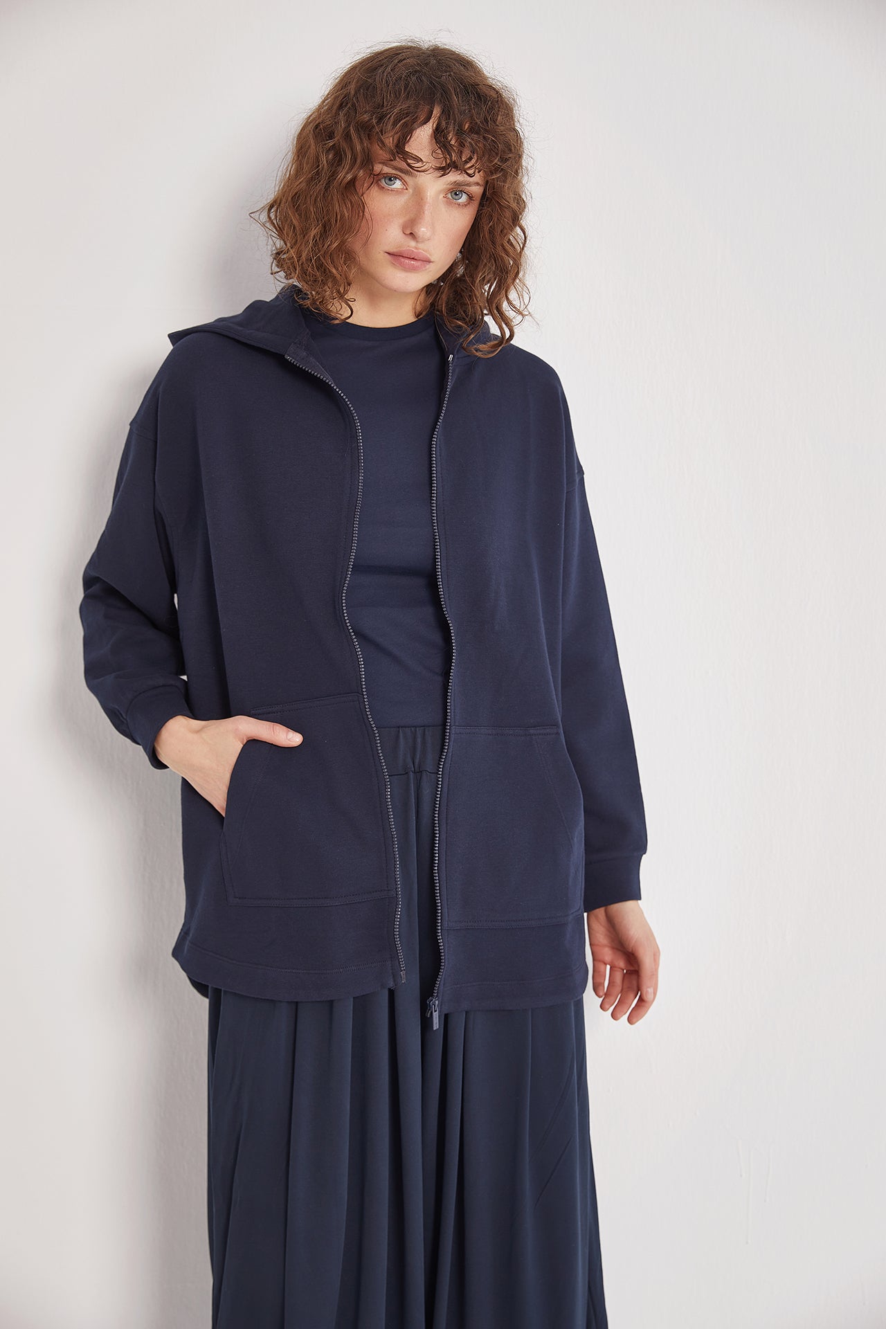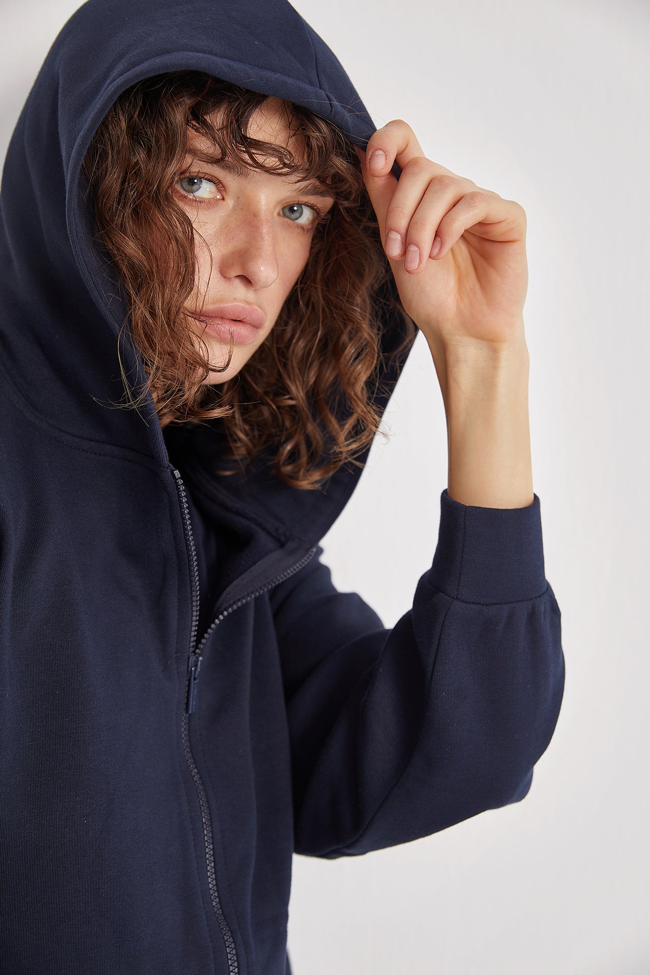 Full-Zip Cotton Hoodie for Women – Long Fit with Pockets
