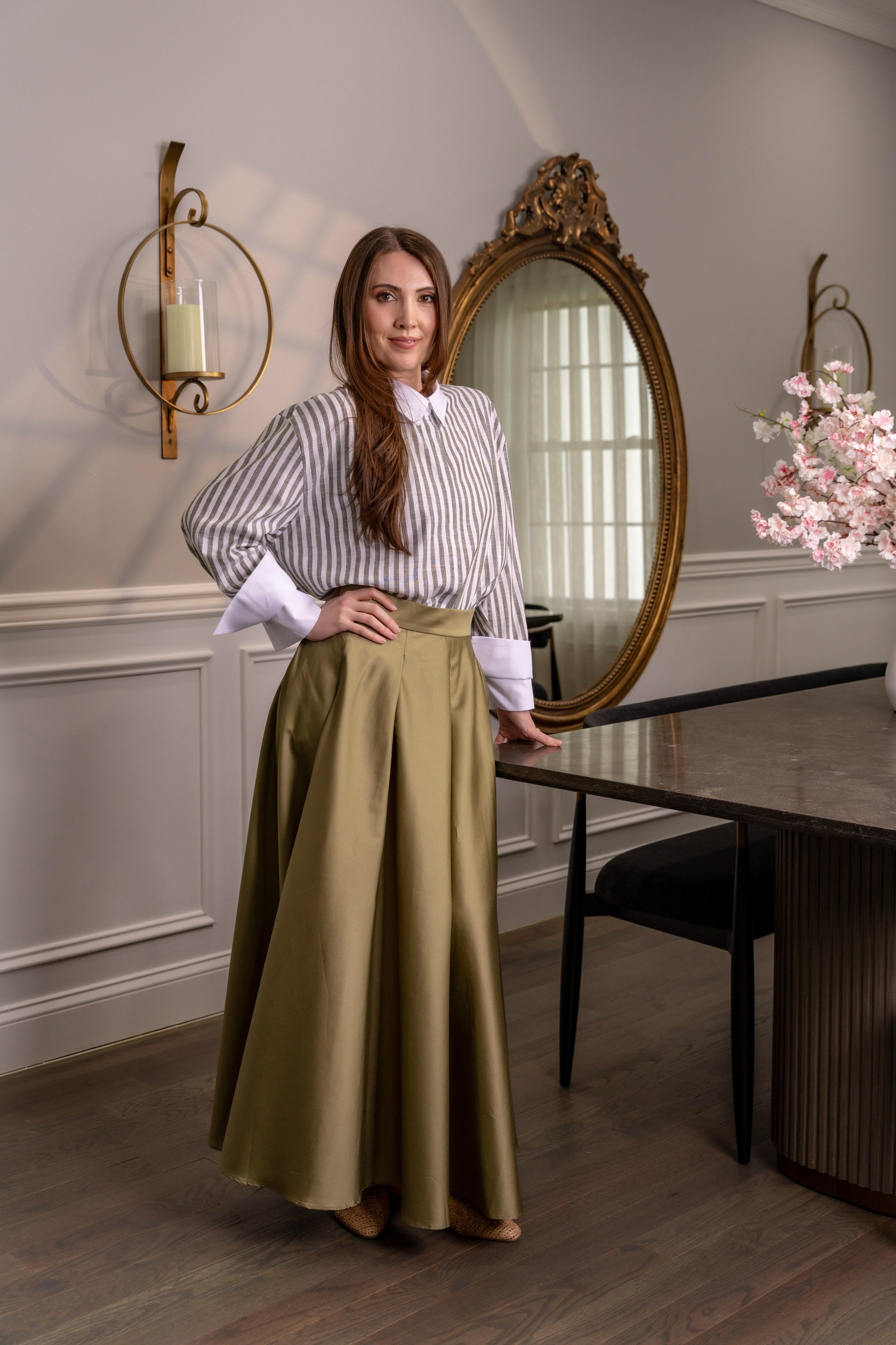 Cotton Maxi Skirt with Pockets – Elegant Satin-Finish Look