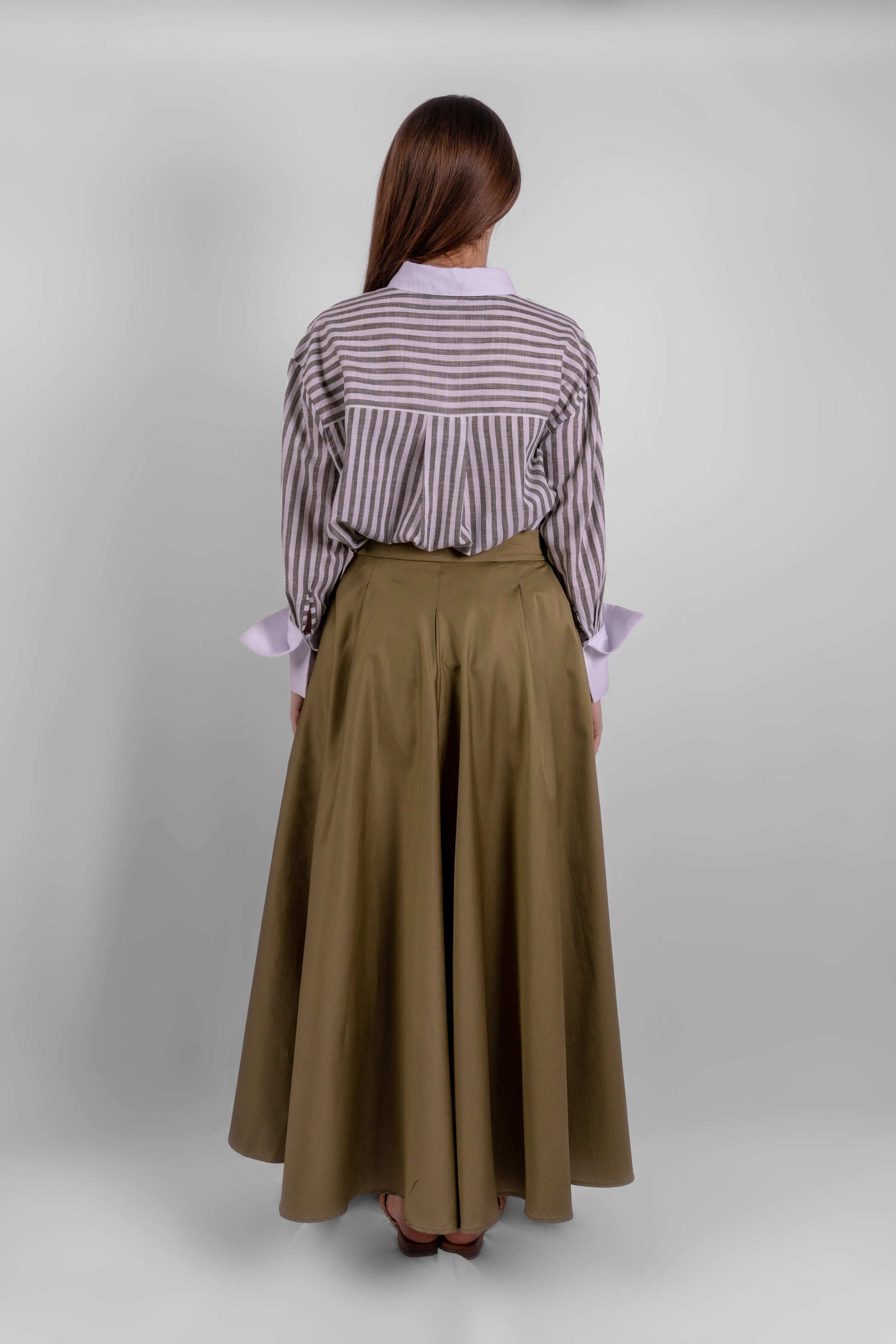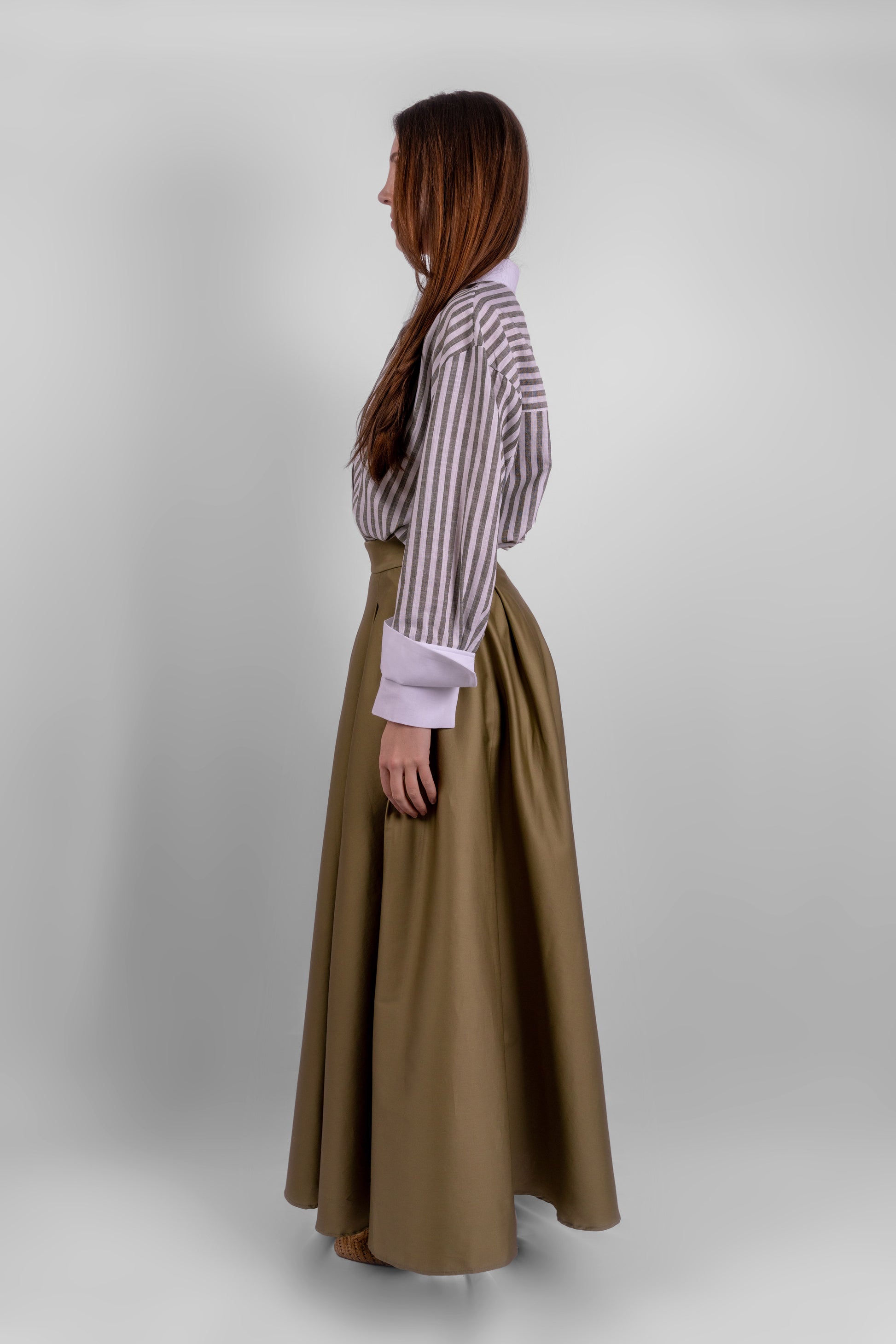 Elevate your wardrobe with this cotton maxi skirt, designed with a subtle satin-like sheen for a touch of understated elegance. Crafted from premium-quality cotton, it features hidden side pockets for effortless functionality.
