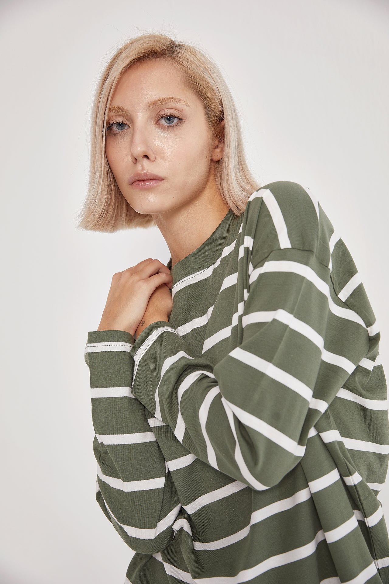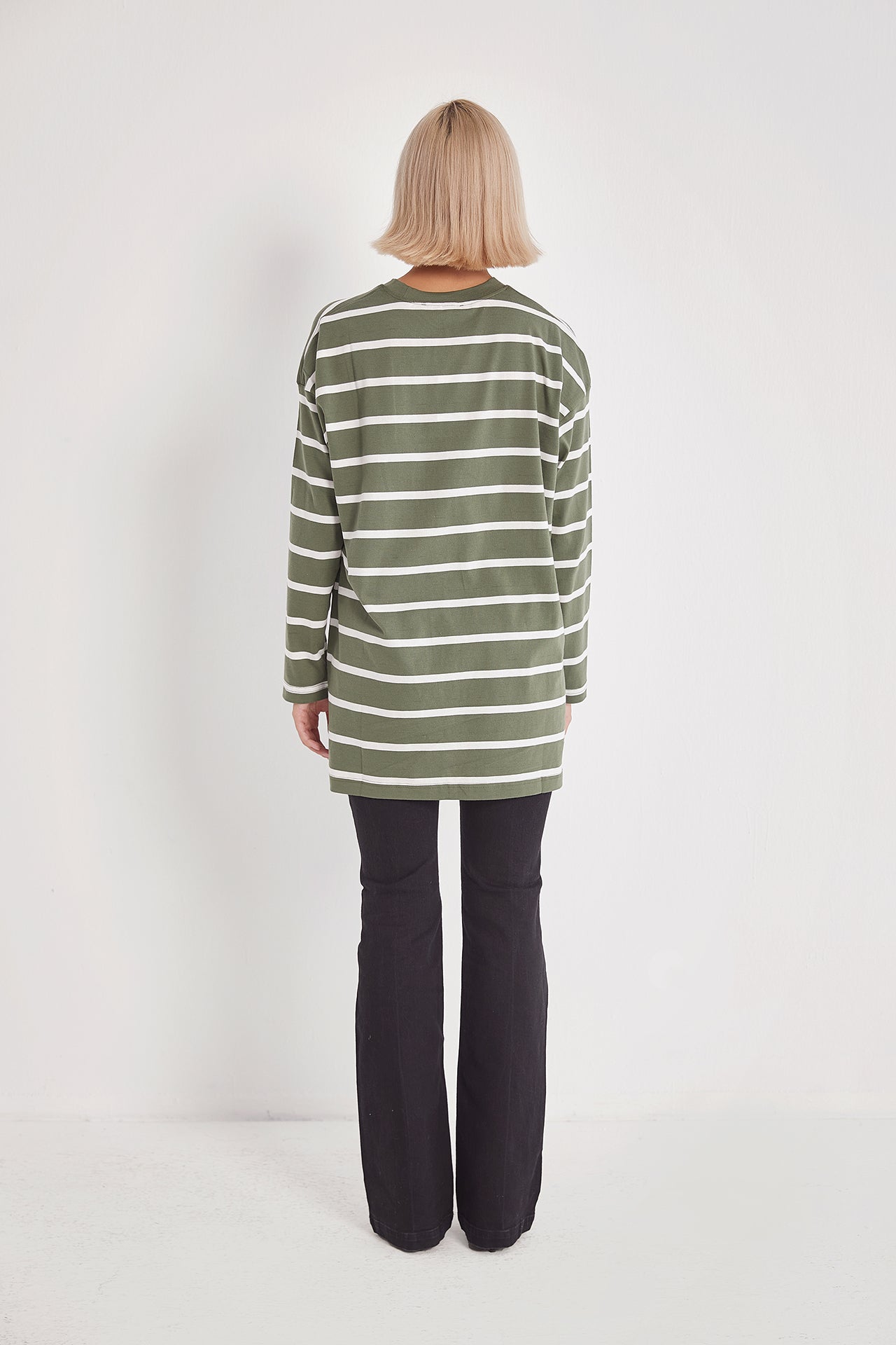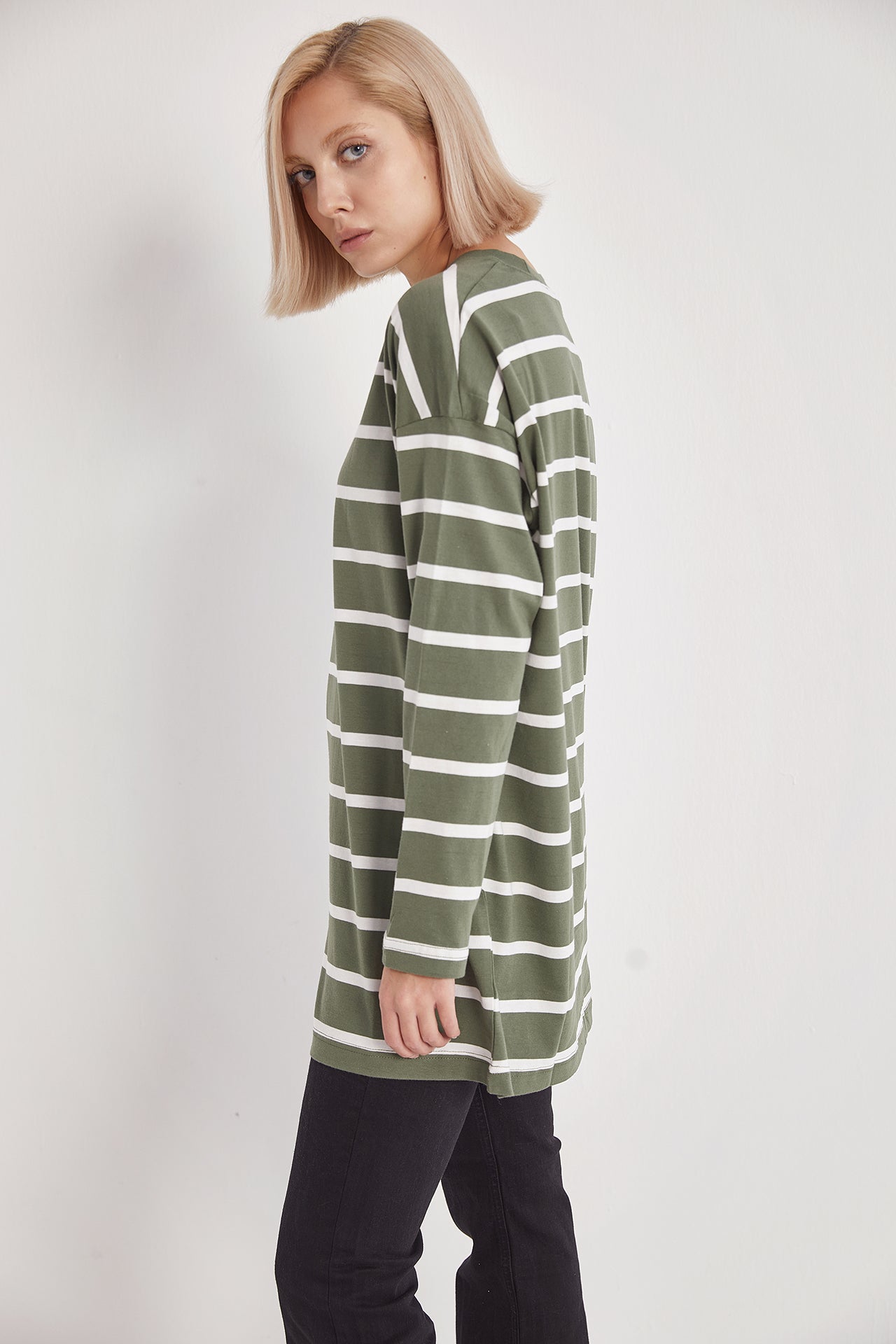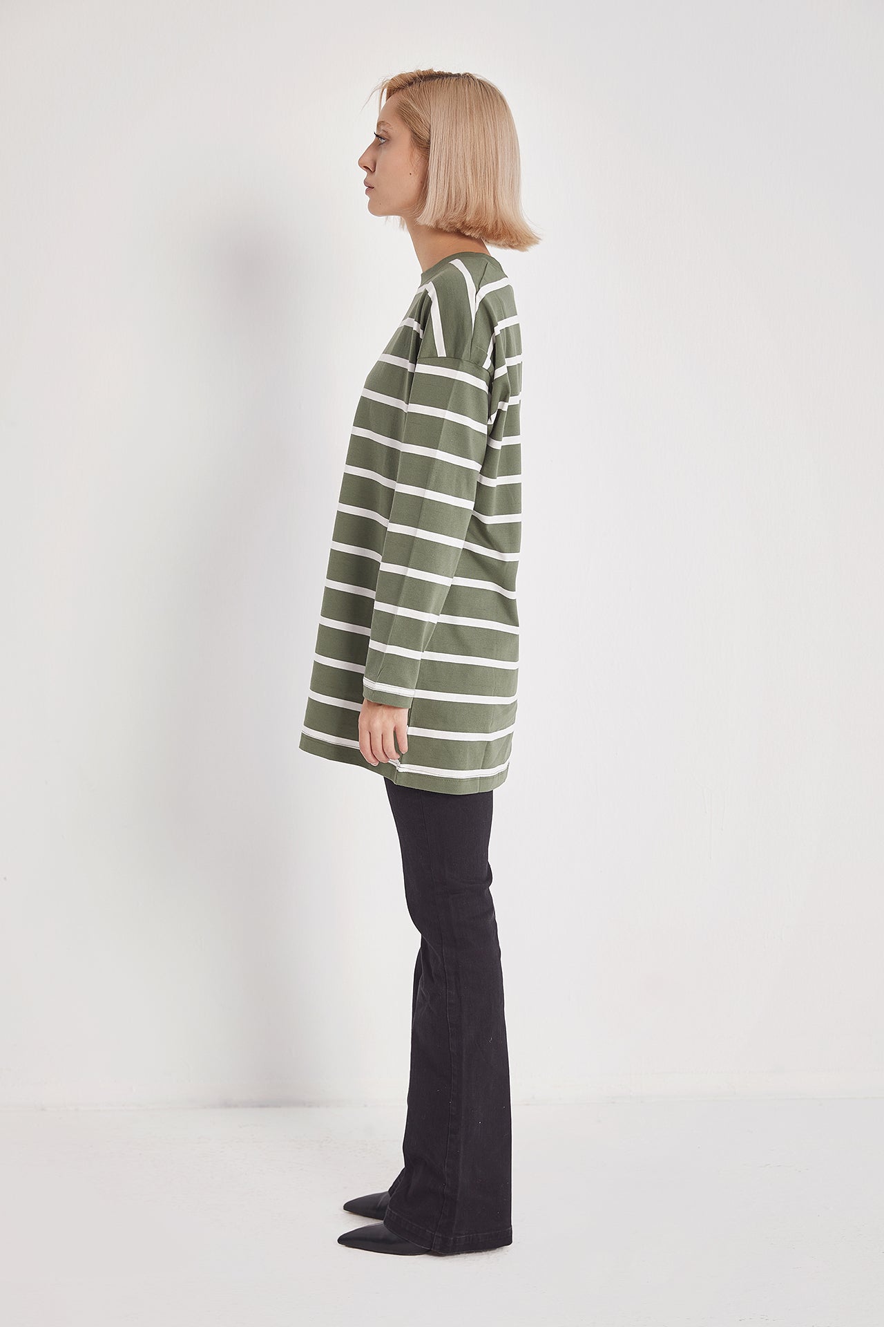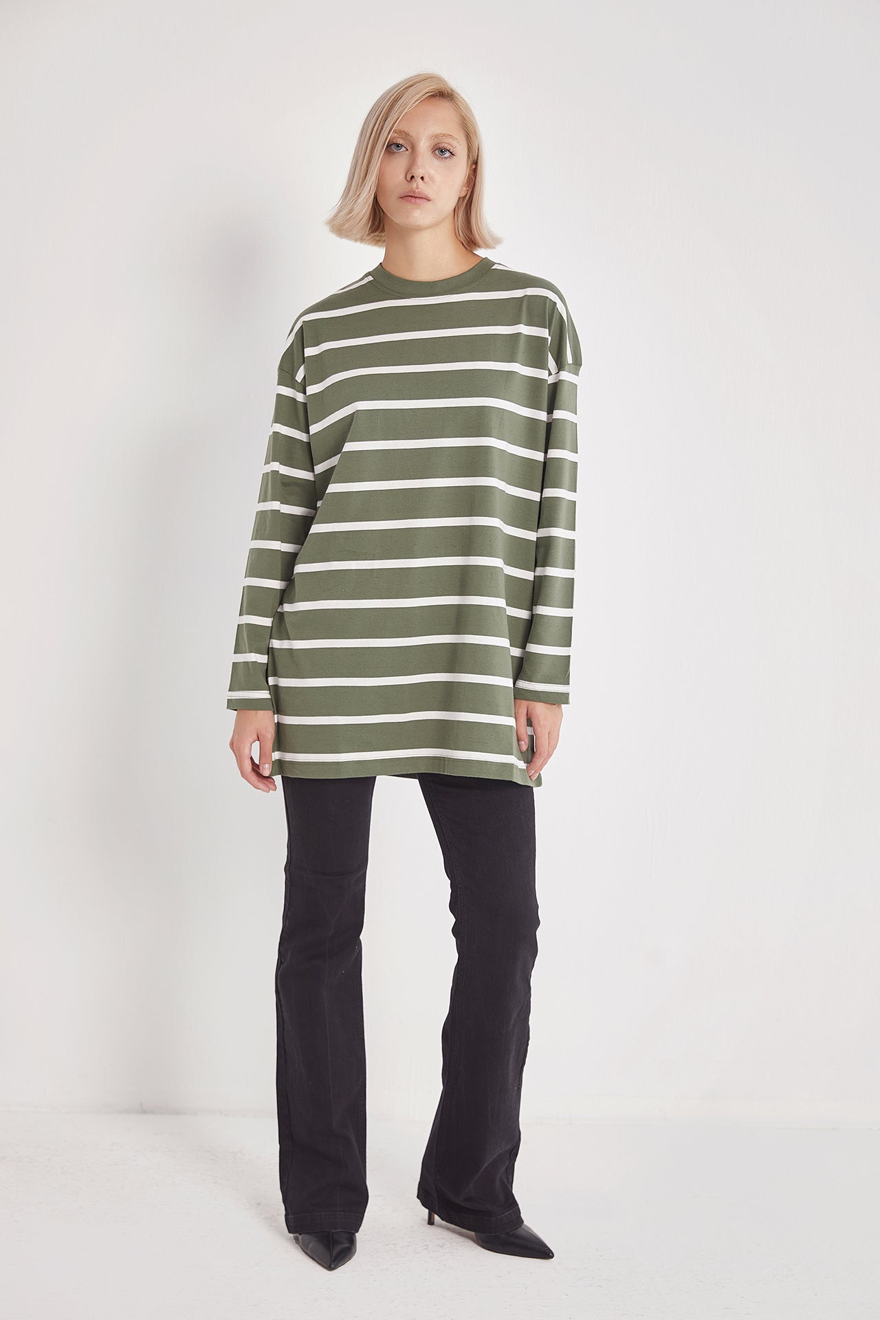 Women's 100% Cotton Striped Tunic Sweatshirt – Long Length, Casual & Breathable