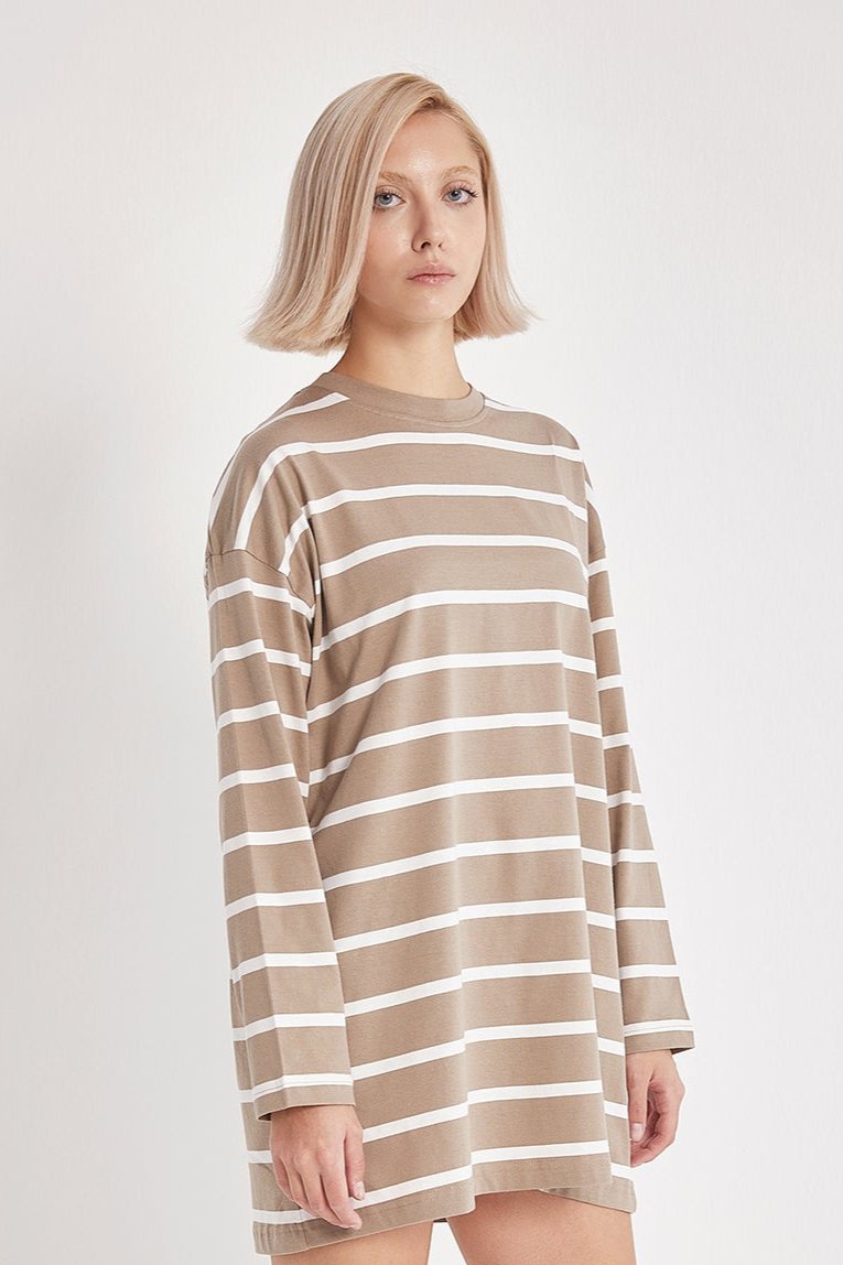 Women's 100% Cotton Striped Tunic Sweatshirt – Long Length, Casual & Breathable