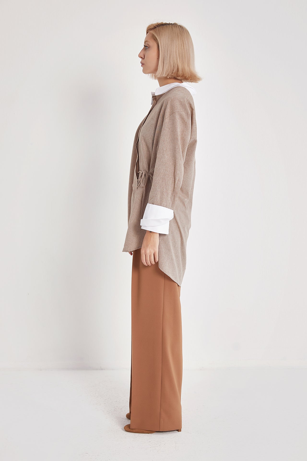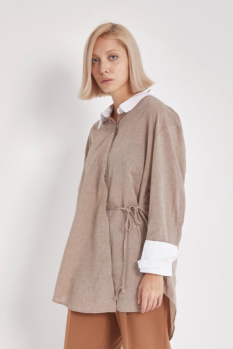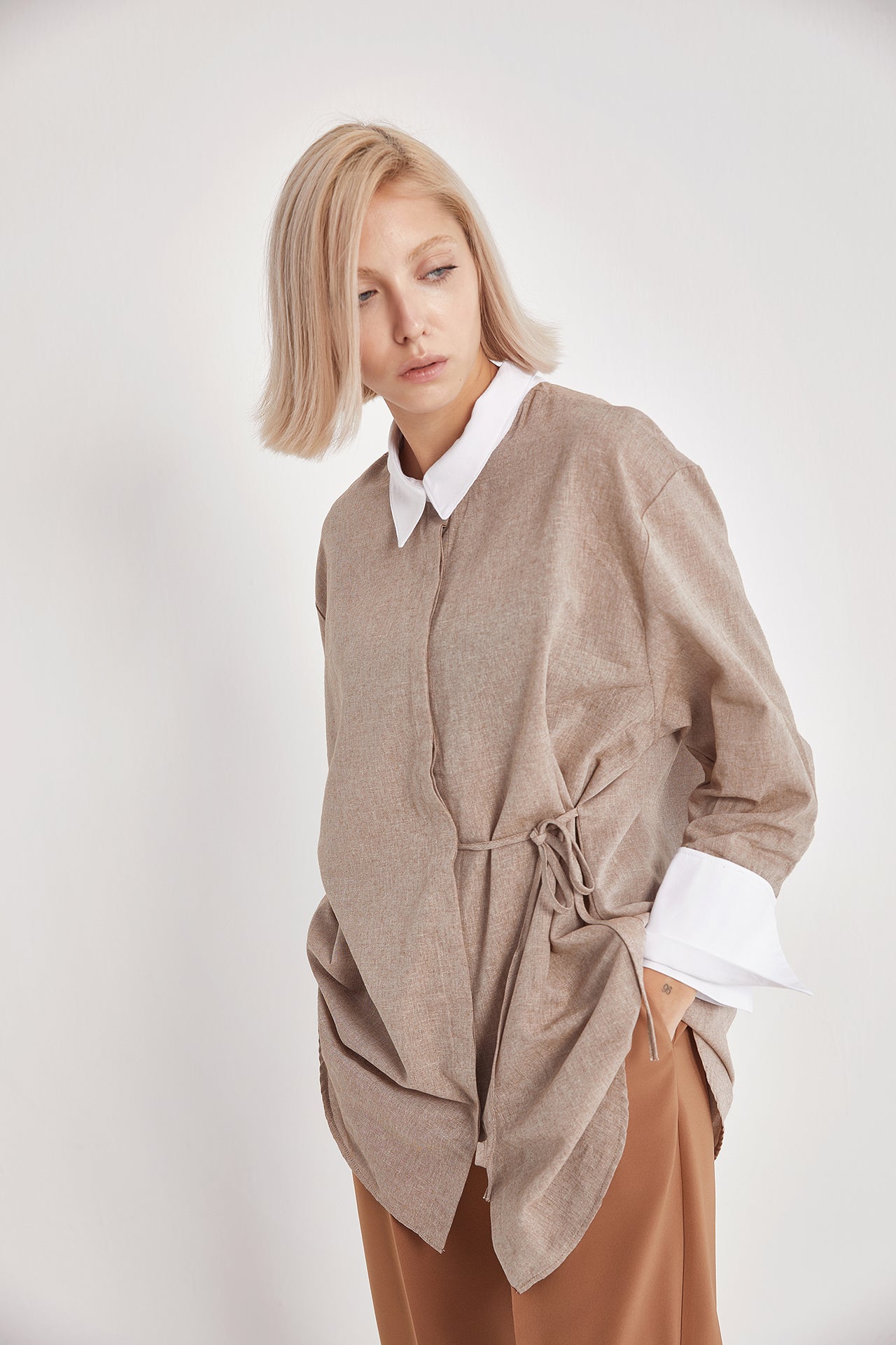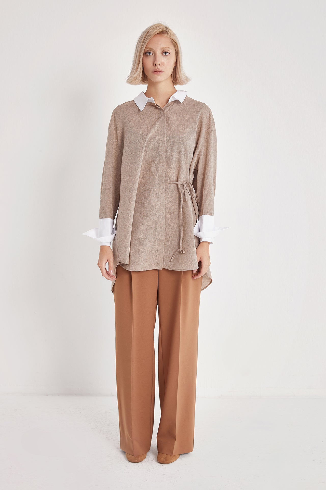 Elevate your wardrobe with our Oversized Cuff Detailed Cotton Shirt, crafted from a breathable blend of 70% cotton and 30% linen for all-day comfort. Featuring original double-cuff details and an asymmetrical thin belt tie, this shirt offers a unique and refined silhouette. Available in both striped and solid colors, including muted tones, it’s perfect for adding versatility and style to your collection.