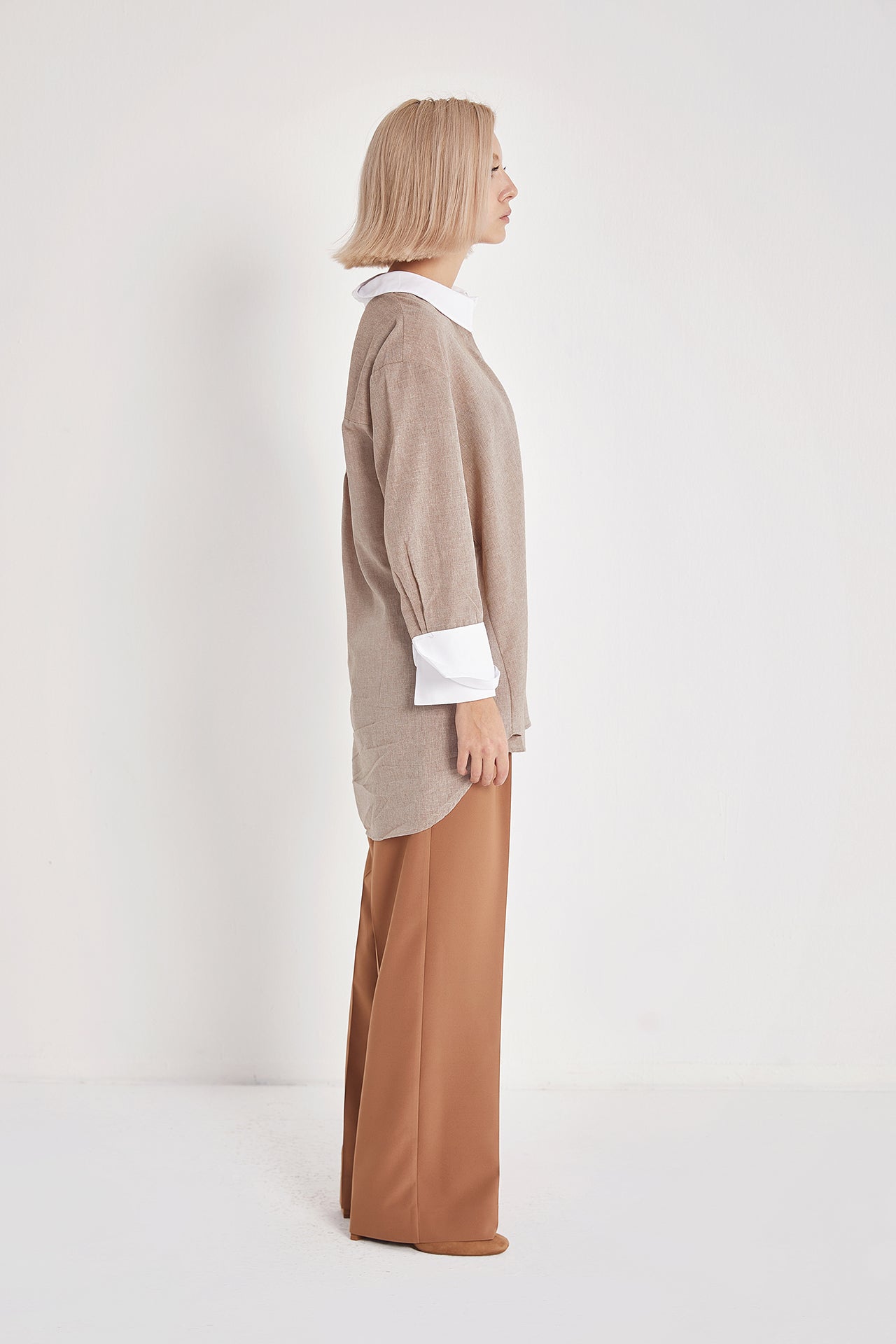 Women’s Cotton-Linen Blend Shirt with French Cuff Detail