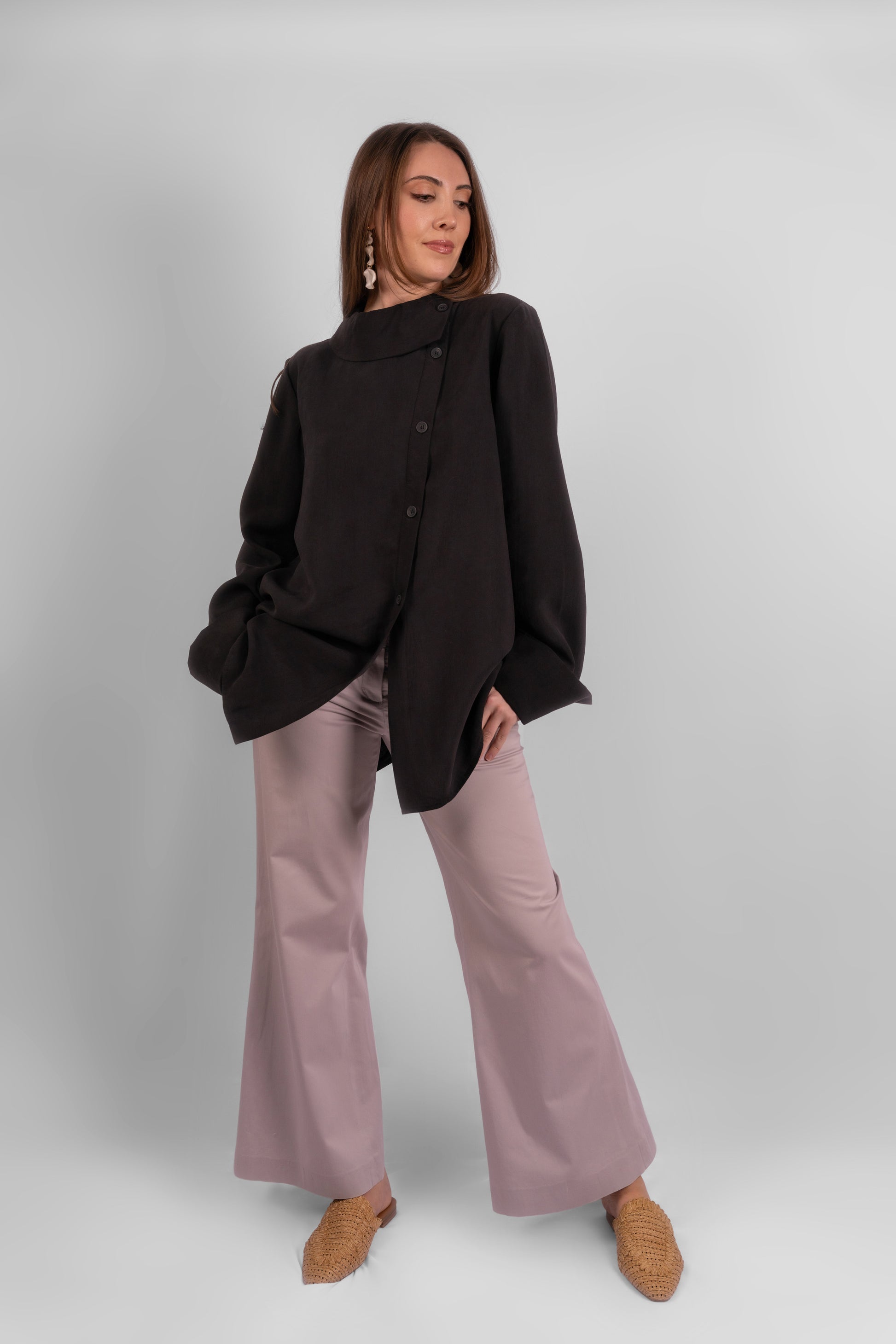 The Exclusive Asymmetric Shirt features a unique, statement-making silhouette with its original asymmetric design. Crafted from luxurious, premium fabric and cut in a flattering tunic length, it’s a versatile piece you can dress up with palazzo pants for special occasions or dress down with jeans for an effortlessly chic everyday look.
