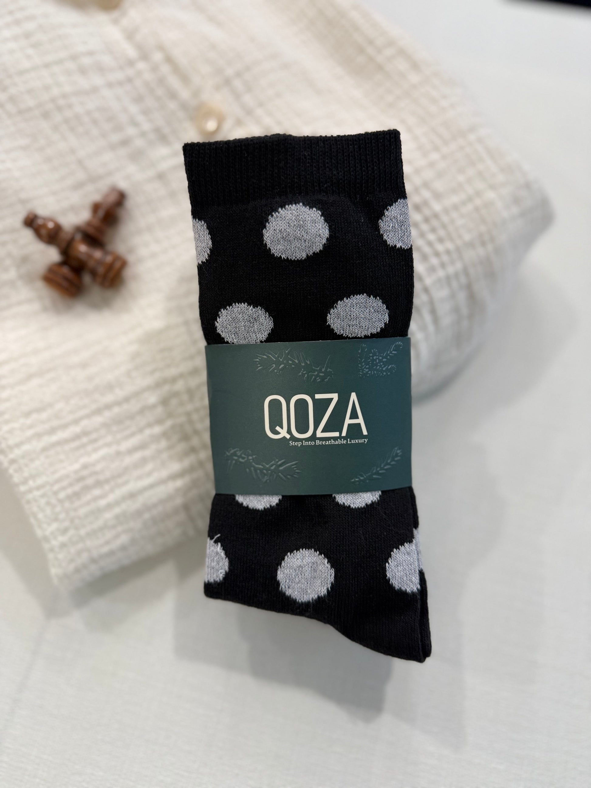 Qoza Polka Dot Cotton Crew Socks – Breathable Luxury, Non-Toxic Comfort