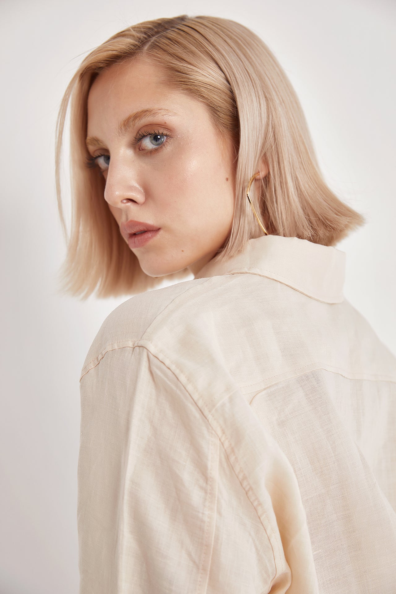 Linen Shirt with Mother-of-Pearl Buttons - Beige
