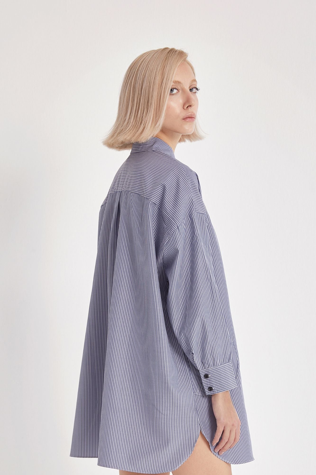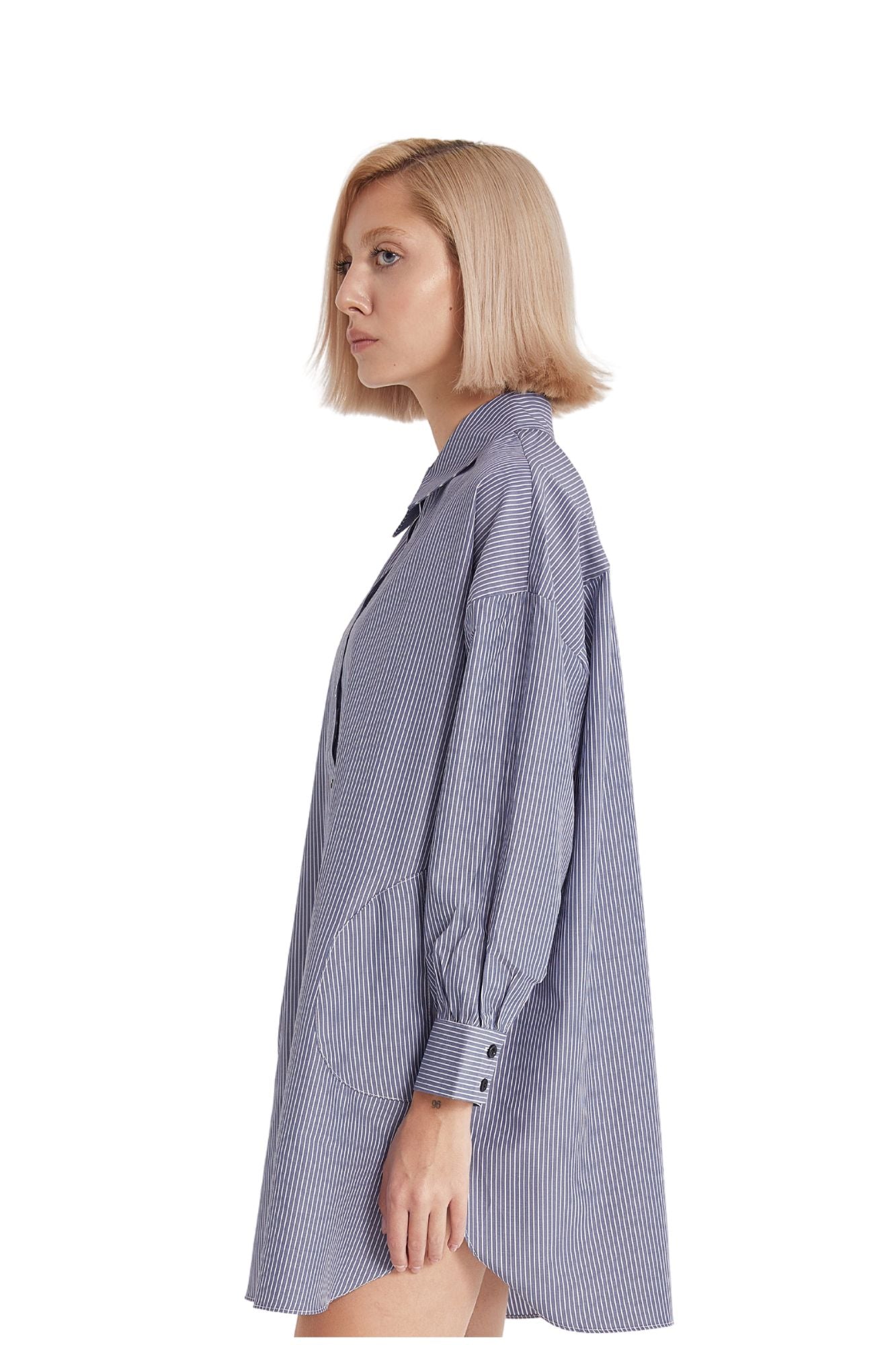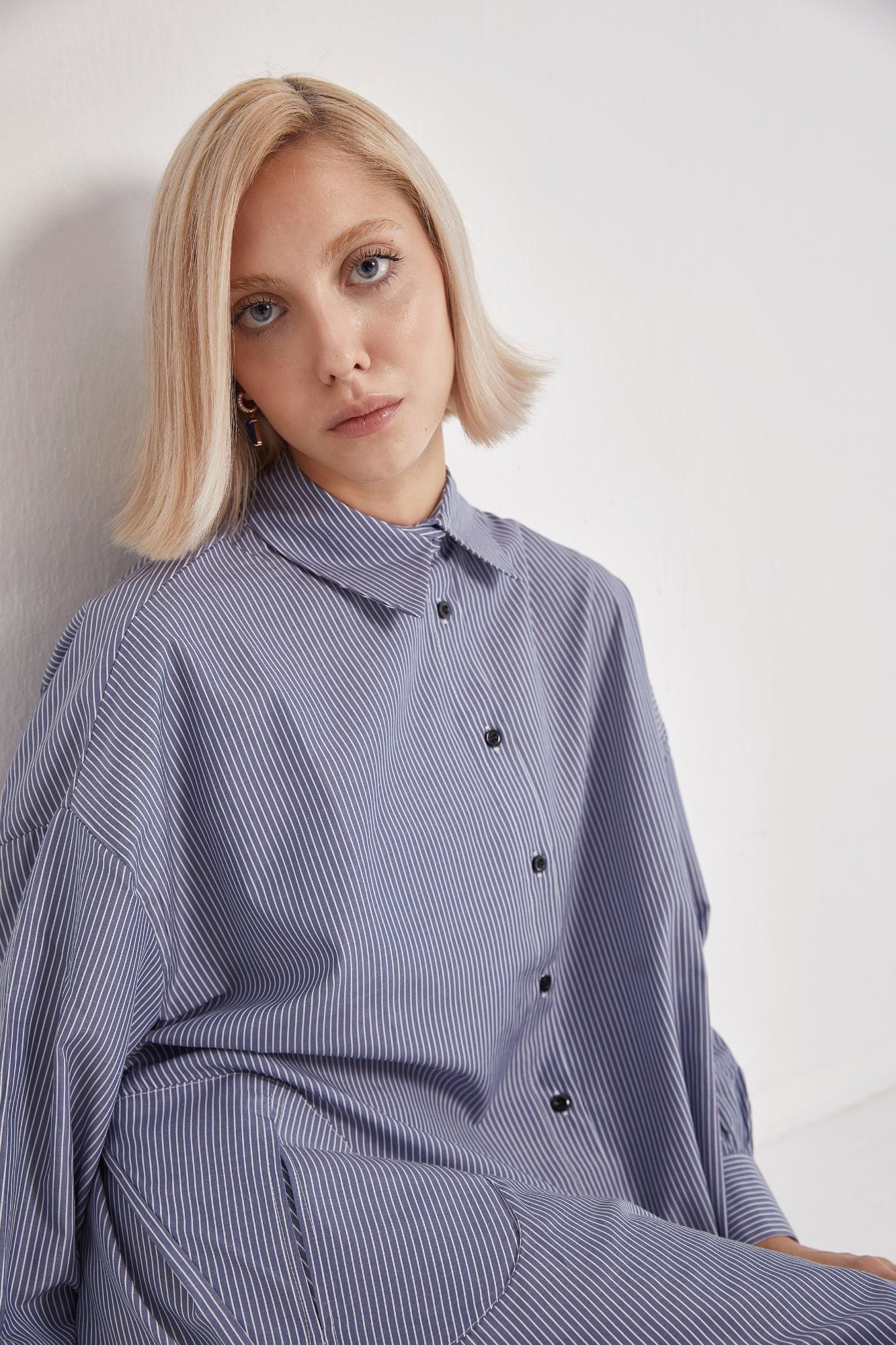 Women’s Striped Oversized Poplin Shirt with Long Sleeves and Pockets